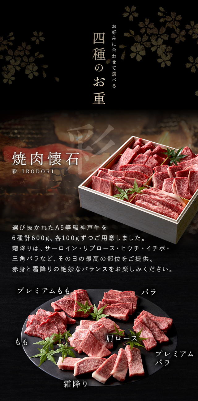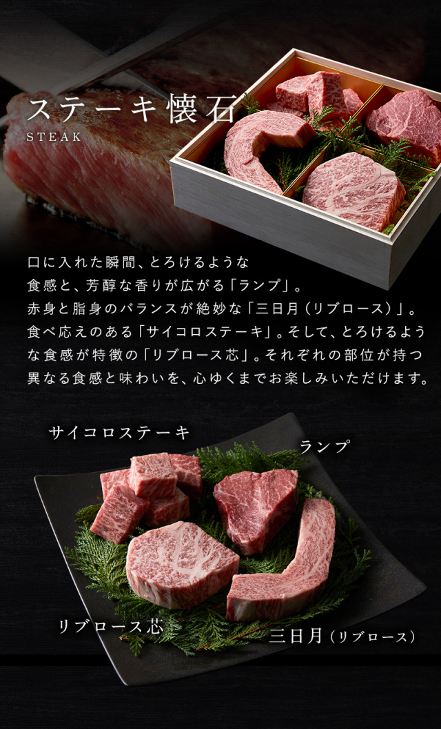 焼肉懐石 彩:600g 焼肉懐石 極:600g すき焼き懐石:500g ステーキ懐石:500g |