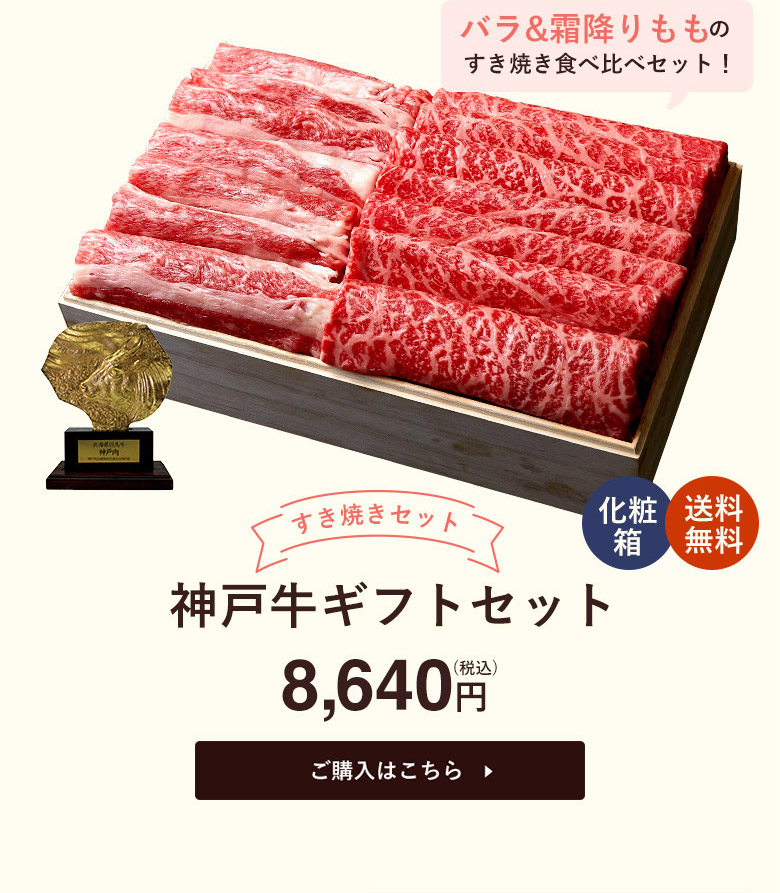 神戸牛ギフトセット 8千円 すきやき(バラ200g・プレミアム霜降りもも200g)400g