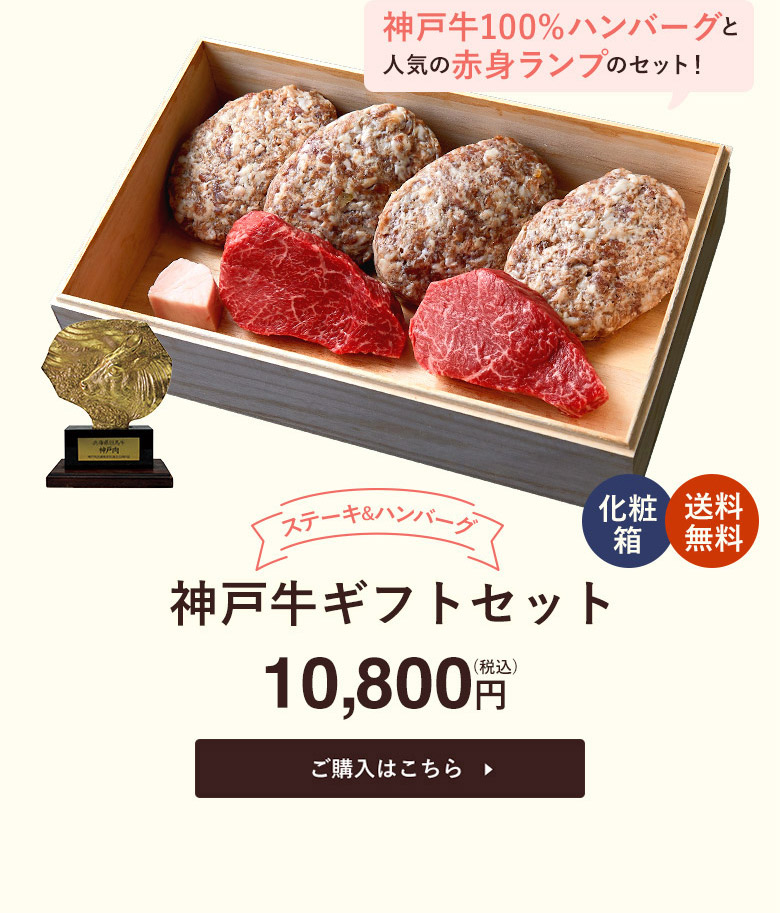 神戸牛ギフトセット 1万円 ステーキ・ハンバーグ(ランプ100g×2枚・ハンバーグ150g×4個)